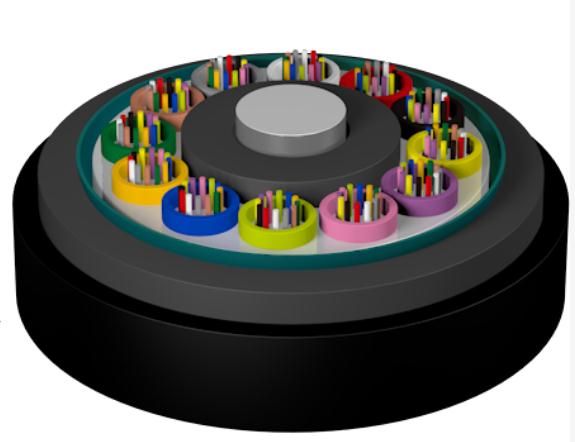 GYTS 光纜的結構是將 250μm 光纖套入高模量材料制成的松套管中,松套管內(nèi)填充防水化合物。纜芯的中心是一根金屬加強芯,對于某些芯數(shù)的光纜來說,金屬加強芯外還需擠上一層聚乙烯(PE)。松套管(和填充繩)圍繞中心加強芯絞合成緊湊和圓形的纜芯,纜芯內(nèi)的縫隙充以阻水填充物。雙面涂塑鋼帶(PSP)縱包后擠制聚乙烯護套成纜。